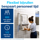 • Deze slanke handdoekdispenser heeft tot 250% hogere capaciteit dan de reguliere Tork handdoekdispensers.